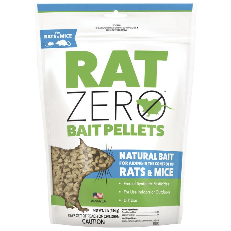 Rat Zero Bait Pellets offer a natural solution for aiding in the control of rats and mice. Free of synthetic pesticides, they are an alternative treatment to conventional pesticides. The convenient, bait pellet form may be used both indoors and outdoors for DIY control.