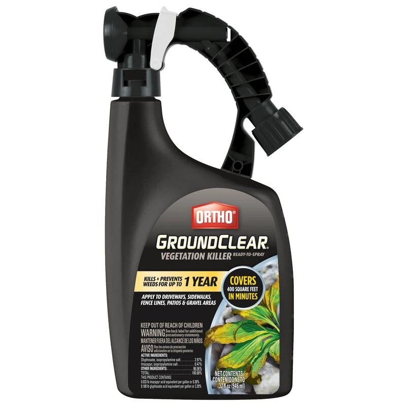 Ortho GroundClear Vegetation Killer Concentrate 2 kills your unwanted vegetation and prevents regrowth for up to one year. You can see visible results in 6 hours as it kills weeds and grasses to the root. Our fast acting formula now has 5X improved coverage and is rainproof in 1 hour.