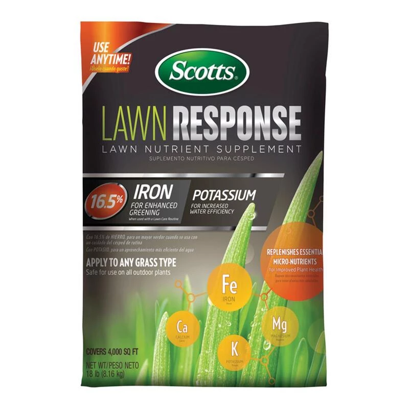 Give your lawn the essential nutrients it needs with Scotts Lawn Response Lawn Nutrient Supplement. With potassium and 16.5% iron, this Lawn Nutrient Supplement replenishes micronutrients to your lawn for improved plant health. You can use on all grass types and outdoor plants. Let Scotts Lawn Response Lawn Nutrient Supplement help make your lawn greener.