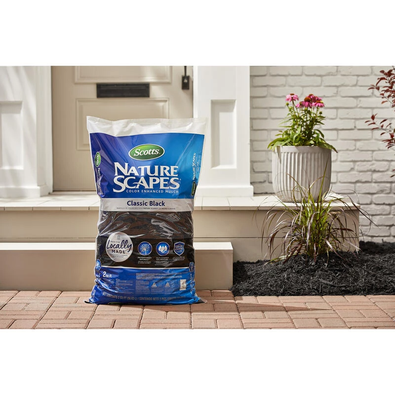 - Bring your yard to life with the vibrant color of Scotts® Nature Scapes® Color Enhanced Mulch Classic Black, which is manufactured an average of 150 miles from the stores where it is sold, and it’s made from regionally-based forest products