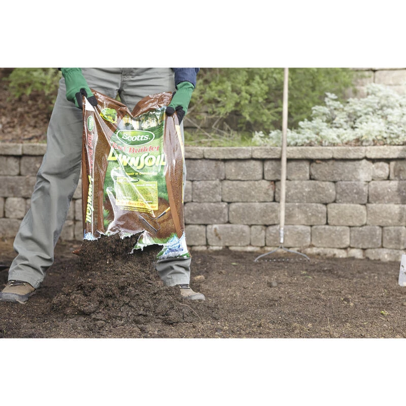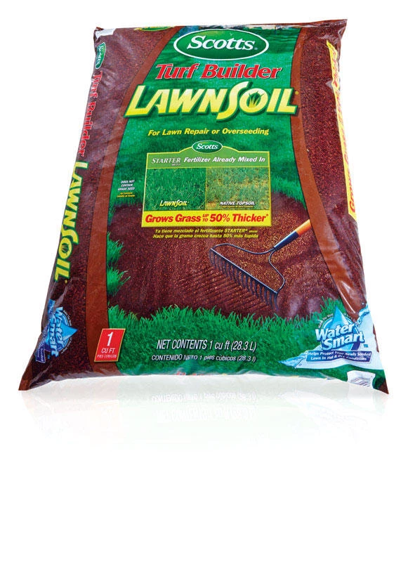 Grow grass up to 50% thicker than native soilโguaranteedโwith Scottsยฎ Turf Builderยฎ LawnSoilโข. (Tests prove Scottsยฎ Turf Builderยฎ LawnSoilโข grows grass up to 50% thicker compared to native topsoil.) This product has been identified as a Water Smartโข product, indicating that it contains a mixture of ingredients that improve moisture retention. Using Scotts will provide better germination than native soil. At the same time, the added fertilizer helps grass seedlings grow faster and stronger, leading to a thicker, greener lawn.